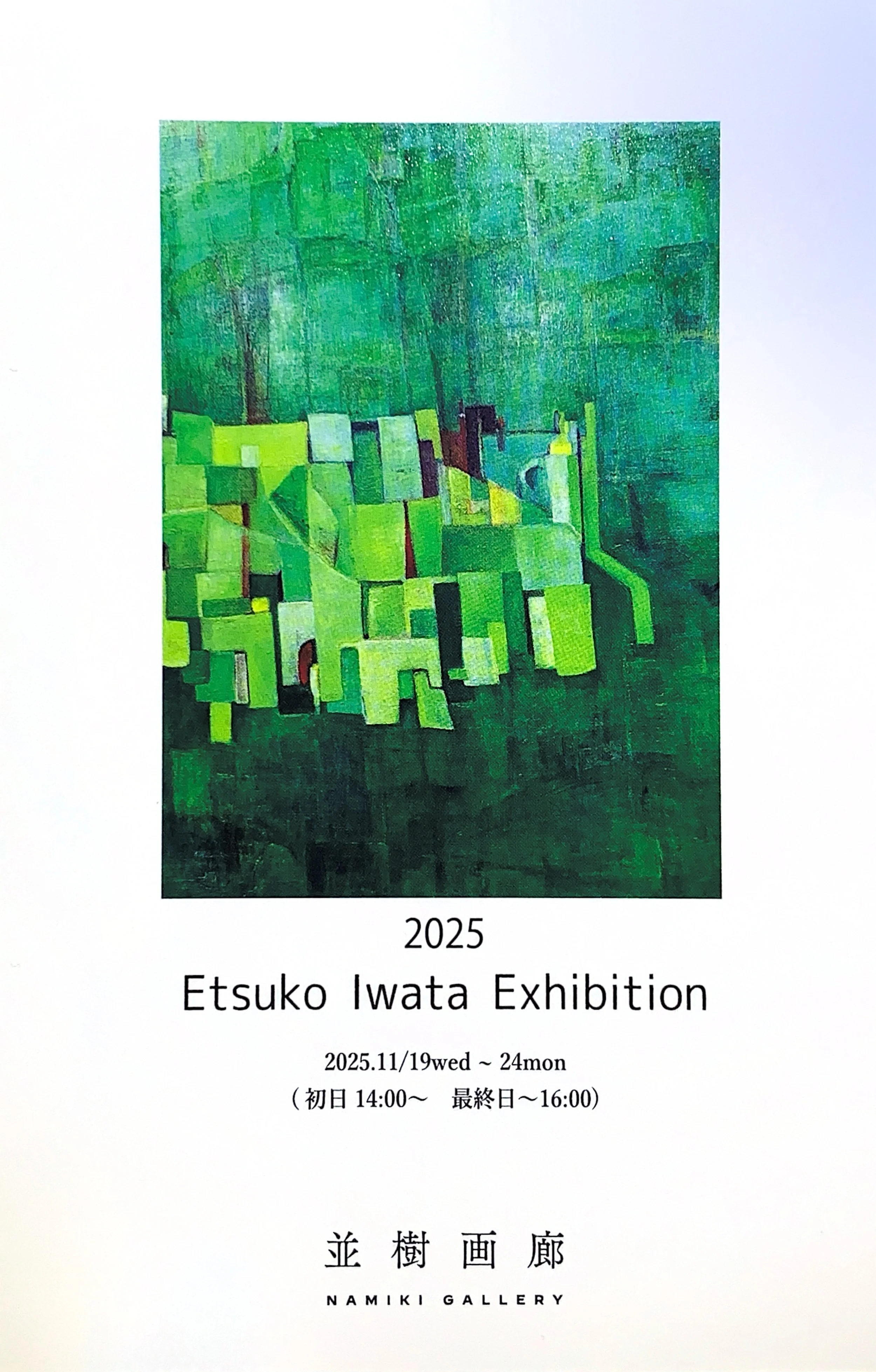 岩田悦子 個展 Wednesday, November 19, 2025 11:00 AM 11:00 Monday, November 24, 2025 6:00 PM 18:00 並樹画廊 Namiki Gallery 2-7-12 Kyobashi Chuo City, Tōkyō-to, 104-0031 Japan (map) Google Calendar ICS 2025年11月19日(水)~11月24日(月)11:00~18:00※初日14:00から、最終日16:00まで