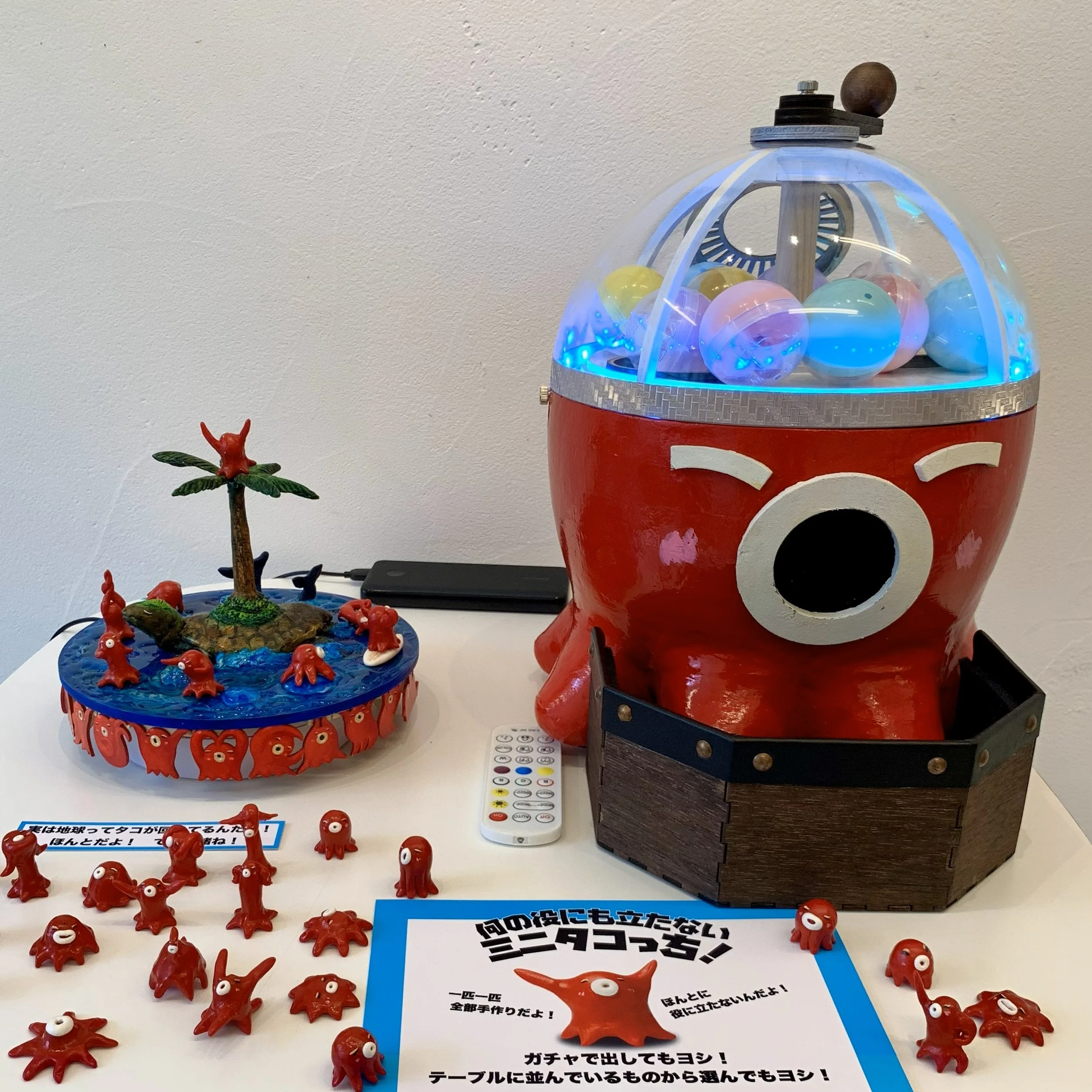 作品の展示だけでなくミニタコっちのガチャガチャなど