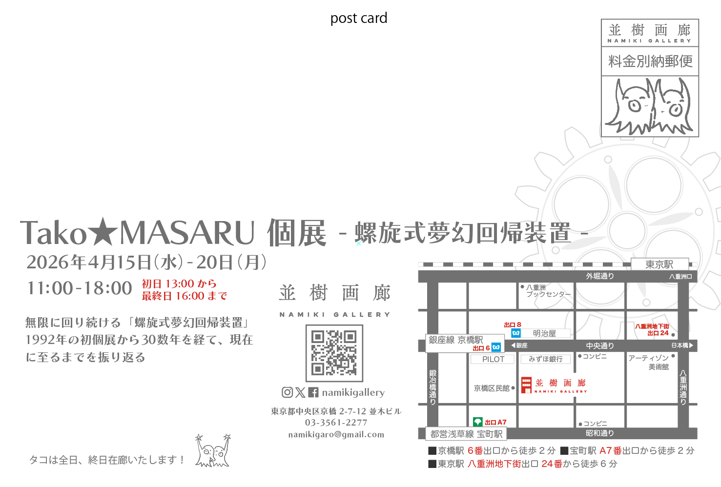 昨年に引き続き今年もTAKO★MASARUさんによる個展を開催いただけることとなりました。