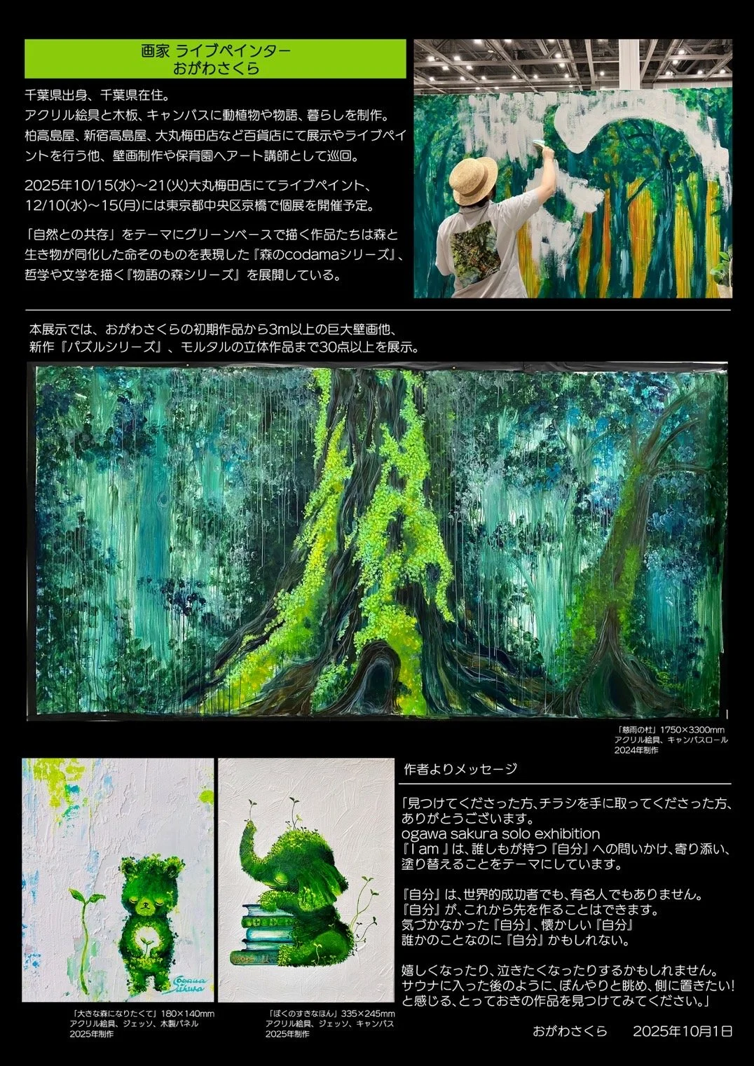 おがわさくら個展「I am」 Thursday, October 9, 2025 11:00 AM 11:00 Tuesday, October 14, 2025 6:00 PM 18:00 並樹画廊 Namiki Gallery 2-7-12 Kyobashi Chuo City, Tōkyō-to, 104-0031 Japan (map) Google Calendar ICS おがわさくら 個展「I am」2025年10月9日(木)~14日(火)11:00~18:00(初日14:00~、最終日15:00まで)作家さんは全日在廊されます、ぜひ足をお運びくださいませ。